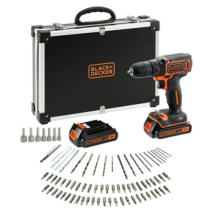 Deze 18V schroefboormachine maakt deel uit van het BLACK+DECKER 18V POWERCONNECT accusysteem. Deze machine maakt deel uit van een kit en wordt geleverd met 2x 18V 1.5Ah accu’s, een lader en 80 accessoires in een Flightcase.