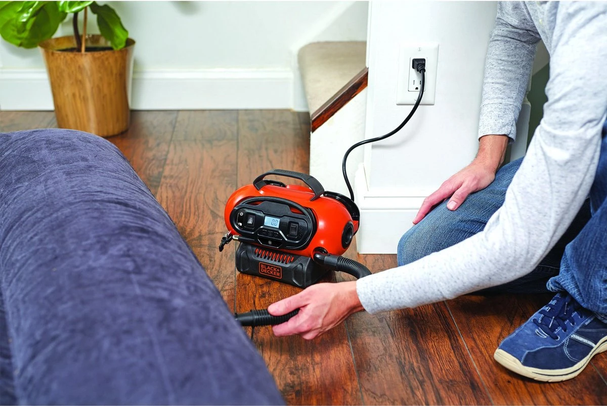 Deze krachtige multi-voltage compressor heeft 3 energiebron opties en is daardoor de meest gebruiksmakkelijke compressor ooit. Hij is ideaal voor het oppompen van grotere opblaasbare artikelen of accessoires, zoals zwembanden, fietsbanden en autobanden. Deze compressor wordt geleverd zonder de 18V accu die compatibel is met al het 18V elektrische Klus- en Tuingereedschappen van BLACK+DECKER.