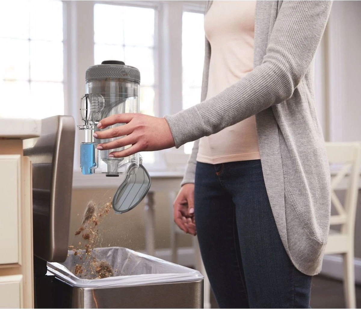 De opvangbak en filters zijn uitneembaar en afwasbaar. Reinig deze op regelmatige tijdstippen, zo blijf je steeds grondig en hygiënisch schoonmaken en het verlengt de levensduur van zowel je steelstofzuiger als filter.