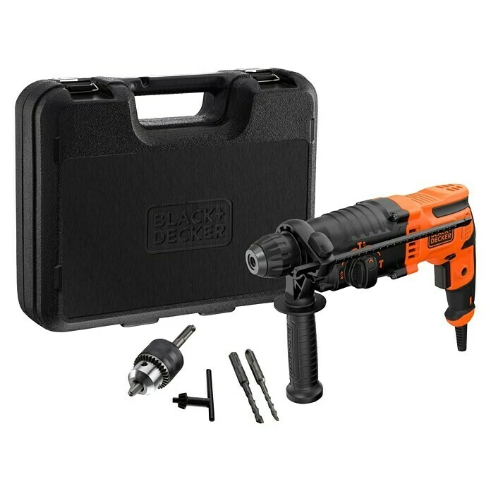 Deze Black+Decker BEHS01K-QS 650 W SDS+ Pneumatische boorhamer is de ideale oplossing voor de zwaarste boor- en breekklussen. De krachtige motor levert een vermogen van 650 W en een slagkracht tot 1.4J (volgens EPTA 05/2009). Dankzij de 3 aanwezige functies kan je efficiënt boren, pneumatisch boren en beitelen in hout (tot 30 mm), metaal (tot 13 mm) en steen of beton (tot 16 mm). Deze boorhamer is daarnaast voorzien van een rotatiestop voor beitelwerk in steen en beton en een slagstop voor het boren in hout en staal. De variabele snelheid zorgt steeds voor een optimale controle tijdens het werken. Dankzij de de slipvrije SDS+ boorkop wissel je eenvoudig tussen verschillende accessoires. Dankzij de aanwezige dieptestop is het mogelijk steeds op dezelfde diepte te boren. Het ergonomische design en de meegeleverde tweede handgreep zorgen ten slotte voor een optimaal comfort. Zo kan je langer doorwerken.